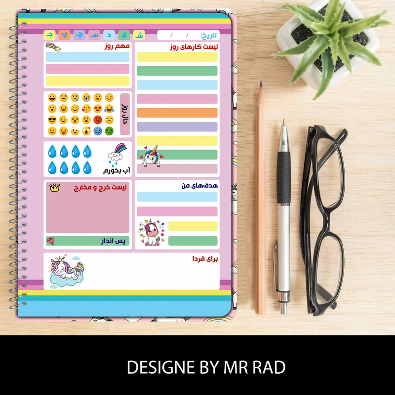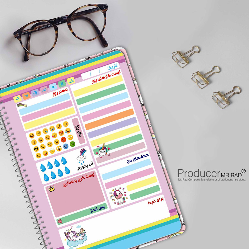 دفتر برنامه ریزی مستر راد طرح اسب تک شاخ مدل پلنر روزانه یک دفتر برنامه ریزی روزانه زیبا و کاربردی است که میتواند به شما کمک کند تا زندگی منظم و هدفمندی داشته باشید. این دفتر دارای طرحی زیبا، ابعاد مناسب، صفحات کاربردی و کیفیت خوب است.