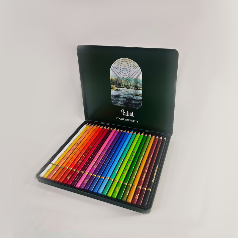 مداد رنگی 24 رنگ آریا آرتیست، انتخابی ایدهآل برای هنرمندان حرفهای، دانشآموزان هنر و علاقهمندان به نقاشی است. این مجموعه در یک جعبه فلزی مقاوم و زیبا ارائه میشود که هم حمل آسان و هم محافظت از مدادها را تضمین میکند. مدادهای این سری دارای مغزی نرم و روان هستند که رنگدانههای غنی و شفاف آنها به راحتی روی انواع کاغذ منتقل میشود. تنوع رنگ بالا، امکان ترکیب طیف وسیعی از رنگها را برای خلق آثار هنری جذاب فراهم میکند. بدنهی ارگونومیک مدادها از چوب با کیفیت ساخته شده و در دست گرفتن آنها حس خوبی به هنرمند میدهد.