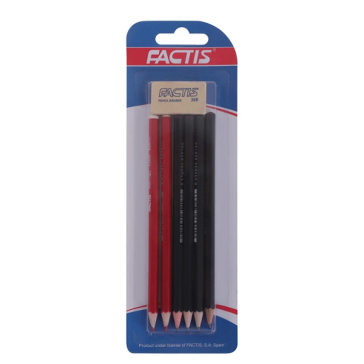 مداد مشکی فکتیس با درجه سختی HB مدل 900 به همراه پاک کن بسته 7 عددی