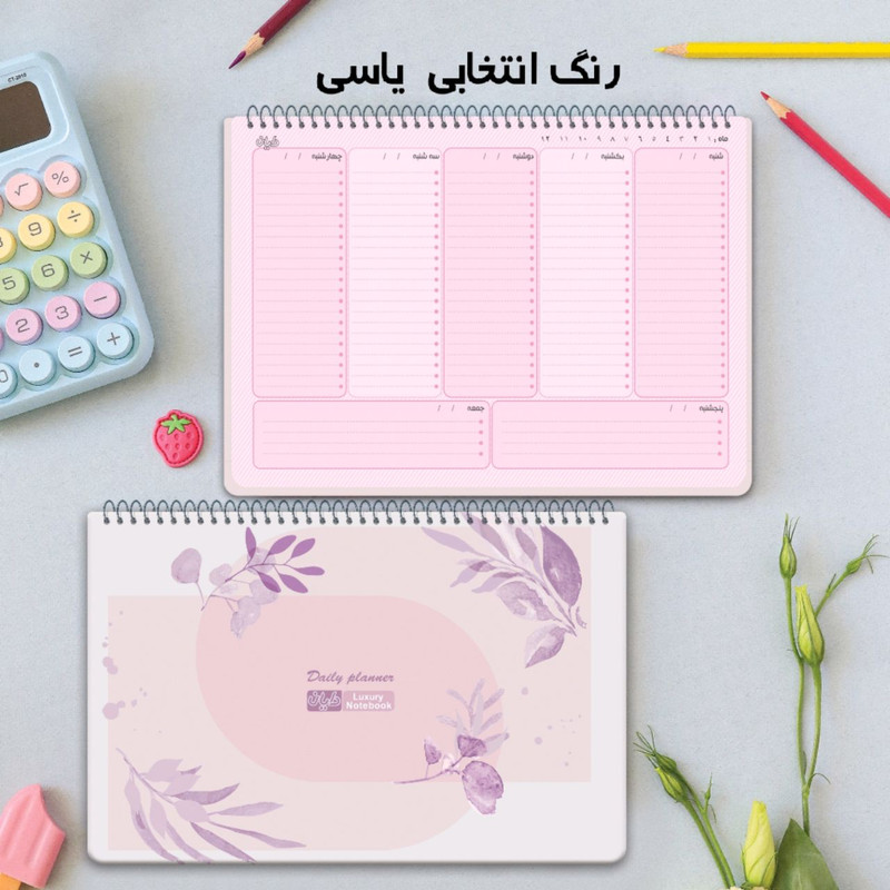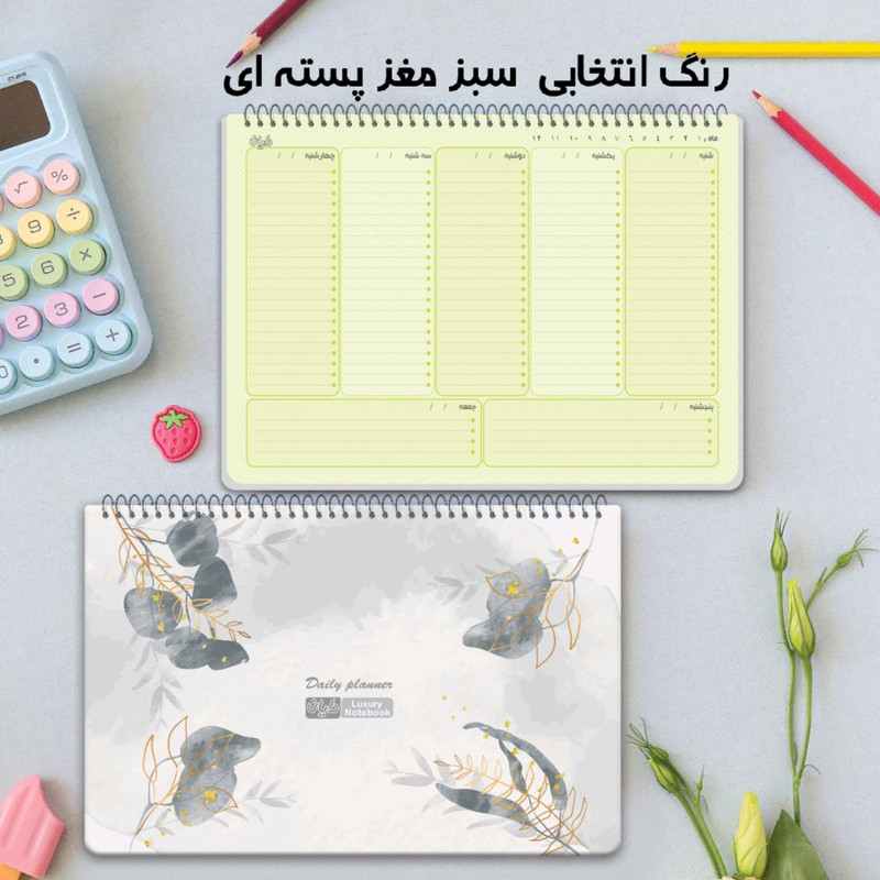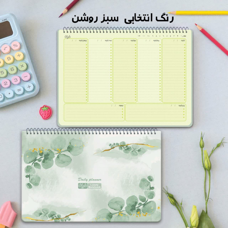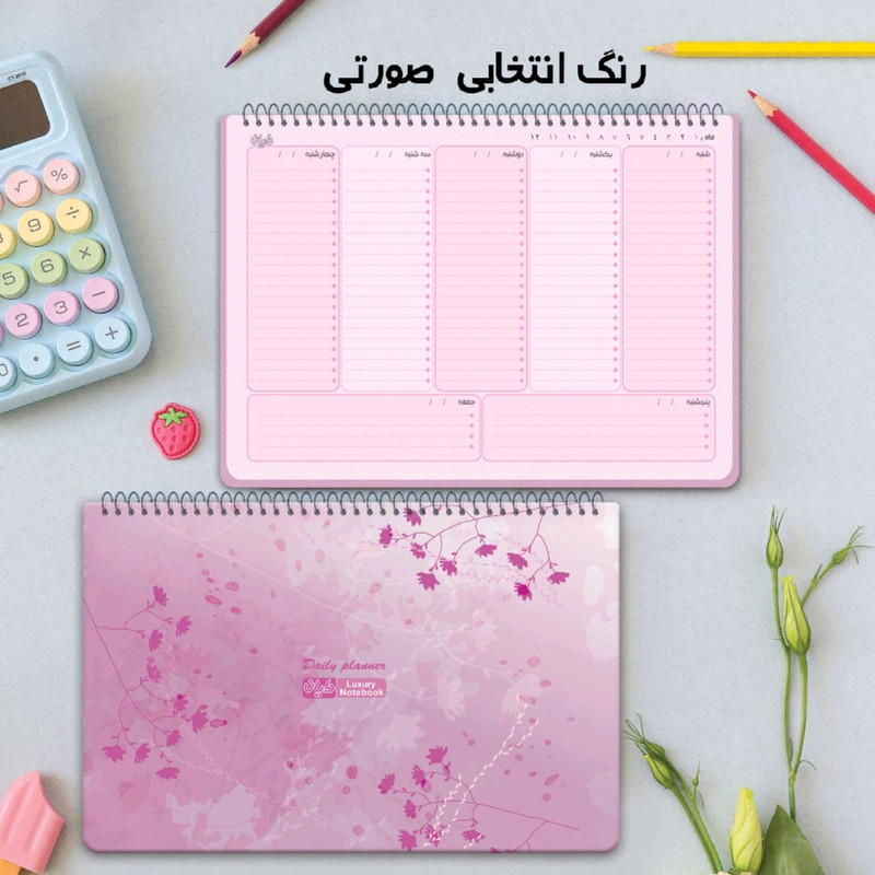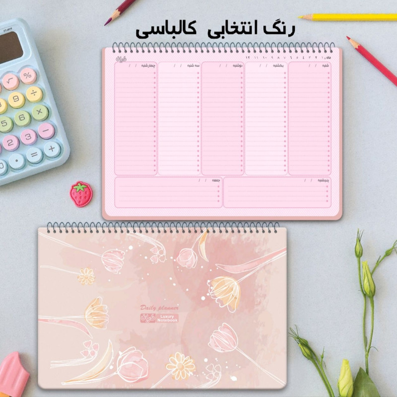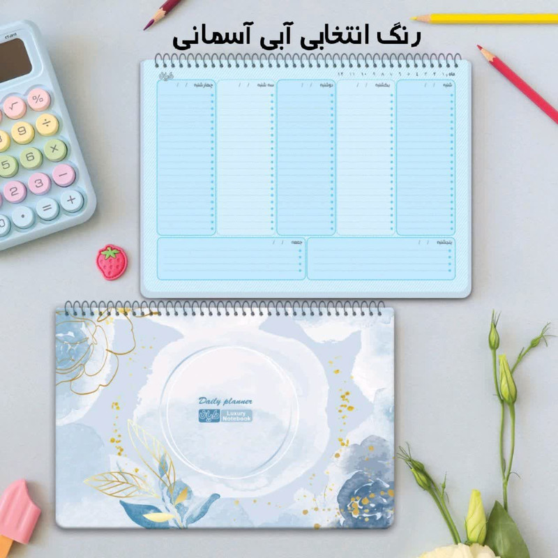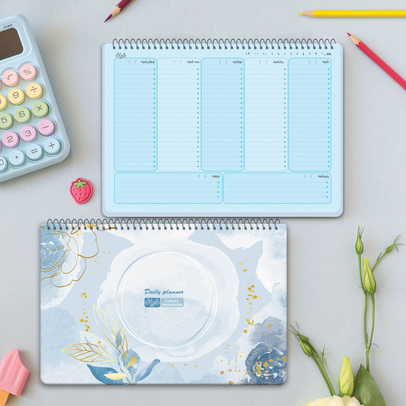 دفتر برنامهریزی هفتگی دایان با طراحی منحصر به فرد خود، انتخابی ایده آل برای علاقه مندان به نظم دهی هفتگی است. این دفتر با ۶۰ برگ کاغذ مرغوب عرضه میشود صحافی سیمی مقاوم امکان باز شدن ۱۸۰ درجه دفتر را بدون هیچگونه آسیب به صفحات فراهم میکند، ویژگی که هنگام نوشتن در صفحات میانی بسیار کاربردی است. ابعاد استاندارد (17*25) و وزن مناسب آن، این دفتر را به همراهی همیشگی برای سازماندهی امور شخصی و حرفهای تبدیل میکند.