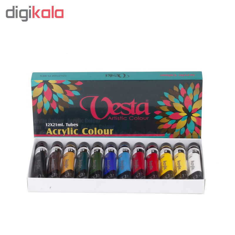 رنگ اکریلیک وستا 12 رنگ حجم 21 میلی لیتر