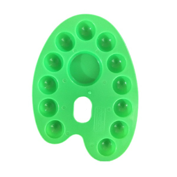 این پالت دارای انحنا برای سهولت در دست گرفتن و مخصوص کار با گواش می باشد. همچنین پالت یکی از لوازم ضروری انواع تکنیک ها میباشد . پالت گواش تخم مرغی( 12خانه) دارای 12 جایگاه مخلوط رنگ میباشد این پالت از جنس پلاستیک بوده است و بسیار سبک و ظریف میباشد.و برای استفاده بلندمدت بسیار پیشنهاد میشود.