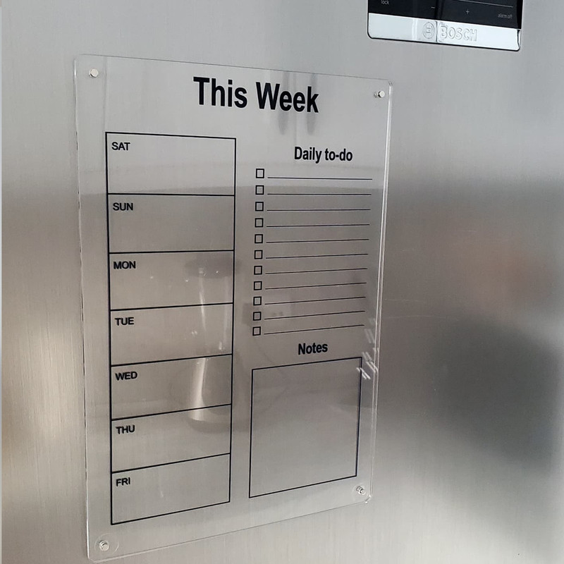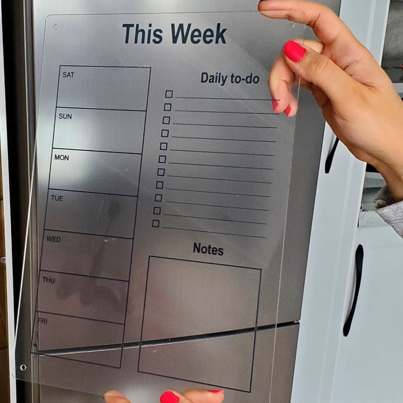 پلنر هفتگی ابزاری مناسب برای سر و سامان دادن به کار های روزانه و جلوگیری کردن از فراموش کردم کارها است . جنس این پلنر از پلکسی شفاف بوده وهمراه 4 عدد آهنربای قوی میباشد همچنین برای جلوگیری کردن از خط و خش افتادن روی یخچال 4 عدد محافظ یخچال همراه کار ارسال میگردد. چاپ رنگی زیبا ای پلنر در پشت کالا میباشد تا شما بدون هیچ دردسری هر چند بار که نیاز دارید روی پلنر برنامه بنویسید و پاک کنید بدون این که به چاپ آن آسیبی برسد