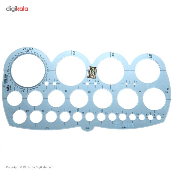 شابلون کیدوز از پلاستیک شفافی ساخته شده که بسیار بادوام است. این شابلون میتواند در ترسیم دایرههایی با قطر 1 تا 55 میلیلیتر به شما کمک کند. طراحی شابلون به شکلی انجام شده که شما بتوانید از آن برای رسم زاویه هم استفاده کنید. بهاینترتیب دیگر نیازی به استفاده از یک نقالهی جداگانه ندارید. استفاده از نوشتافزار مانند راپید با قطر نوشتاری 0.5 کار با این شابلون را برای شما آسانتر میکند.
