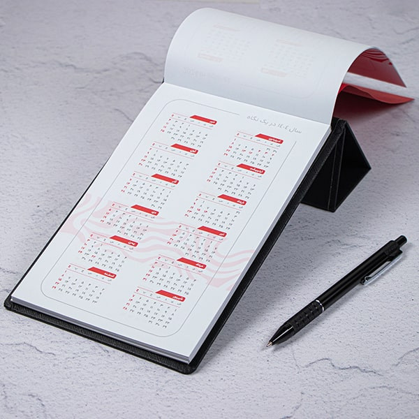 سایر توضیحات : نوع و رنگ کاغذ: تحریر سفید / نوع صفحه بندی: سال در یک نگاه به همراه یادداشت