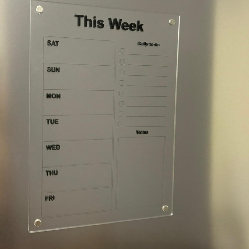تخته وایت برد مدل پلکسی طرح پلنر هفتگی سایز 21×30 سانتی متر