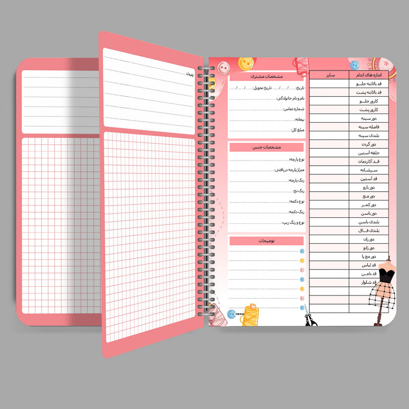 مستر راد با تیمی مجرب از متخصصین صنعت چاپ اقدام به تولید و چاپ انواع دفترها و دفتر خیاطی نموده است. همه عاشقان لوازم تحریر، دفتر ، کتاب و همه کسانی که بنا به موقعیت تحصیل یا شغلشان با دفتر و نوشت افزار زیاد سرو کار دارند، برای خرید دفتر های مستر راد به خصوصیات آن توجه و پس از بررسی کامل خرید میکنند. خصوصیاتی مثل کیفیت کاغذ، جنس و دوام و طراحی جلد، طراحی صفحات، نوع صحافی ، تعداد صفحات، قطع و اندازه دفتر و… در انتخاب دفتر تأثیر گذار است.این دفتر برای ثبت اندازه لباس طراحی شده است. خیاطان عزیز می توانند با ثبت این اندازها در دفتری زیبا با طراحی منحصر به فرد، اندازه ی مشتریان خود، مبلغی که دریافت کرده اند، متراژ پارچه دریافتی و موارد دیگر به کار خود نظم ببخشند.همچنین در صفحه مقابل ثبت اندازه ها، یک صفحه شطرنجی قرار داده شده است که هنرمندان طراح لباس می توانند مدل لباس مورد نظر مشتری خود را بر روی آن طراحی کنند.