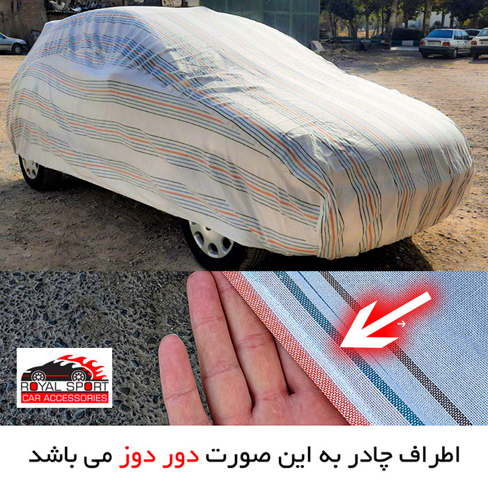 سایر توضیحات: این چادر خودرو به صورت کاملا -دور دوز- شده می باشد، به این شکل که تمامی اطراف چادر خودرو دوخت شده که اصطلاحا از ریش ریش شده پارچه چادر جلوگیری شود xx ضد اشعه مضر خورشید xx پارچه مرغوب درجه یک xx با الیاف پنبه ای xx ضد اشعه xx قابل شستشو
