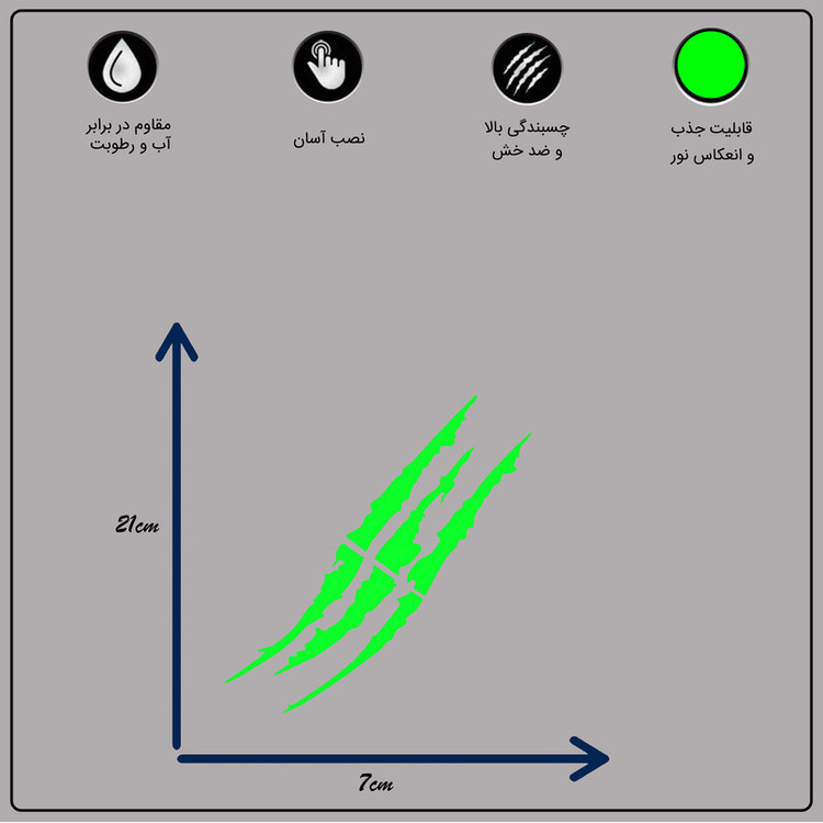 سایر توضیحات: موارد مصرف این برچسب محدودیتی ندارد و بر روی تمام سطوحی مانند چوب ، فلز ، پارچه ، شیشه.و.. میتوانید استفاده کنید،