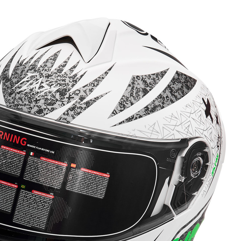 ویژگیهای کلاه کاسکت: قابلیت اتصال به بلوتوث , نشکن , دارای کاور کلاه , عینک , دارای پد قابل شستشو و تعویض , قابلیت تنظیم اندازه به صورت , طلق متحرک , دریچه ورود هوا