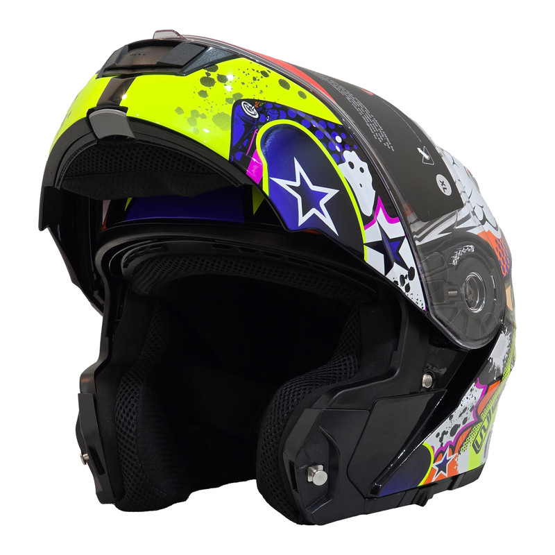 دریچه ورود هوا , طلق متحرک , قابلیت تنظیم اندازه به صورت , دارای پد قابل شستشو و تعویض , دارای کاور کلاه , عینک , نشکن , قابلیت اتصال به بلوتوث