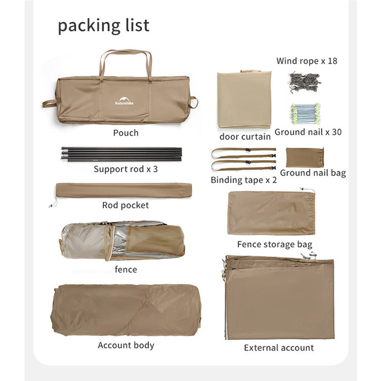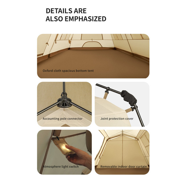 سایر توضیحات : پوشش تیتانیوم وینیل برای مقاومت بسیار بالا در برابر نفوذ آب و نور خورشید-حیاط خلوت با پشه بند بزرگ-چادر به راحتی نصب میشود-