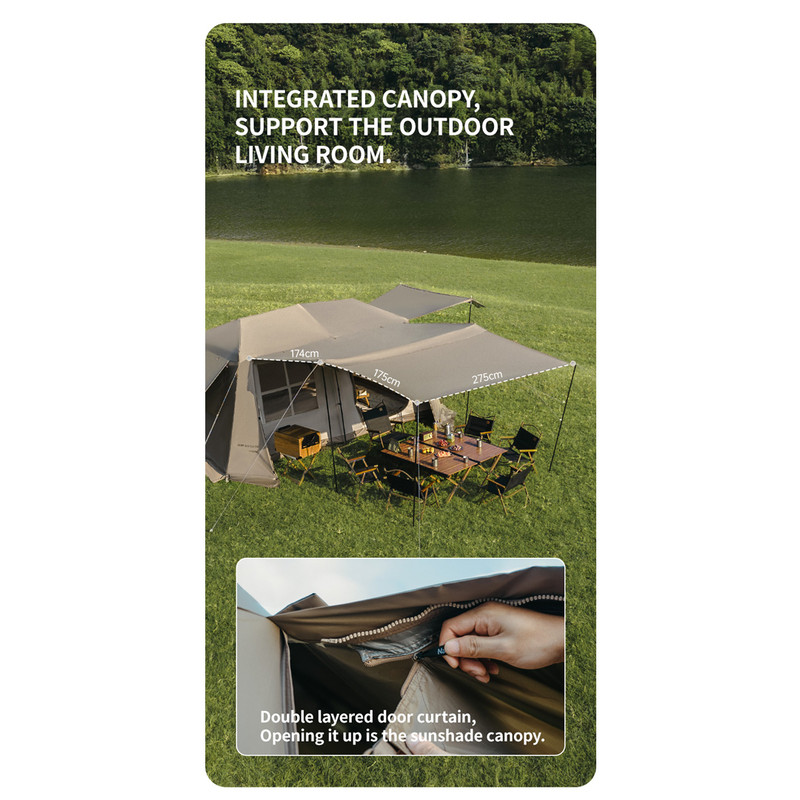 سایر توضیحات : پوشش تیتانیوم وینیل برای مقاومت بسیار بالا در برابر نفوذ آب و نور خورشید-حیاط خلوت با پشه بند بزرگ-چادر به راحتی نصب میشود-
