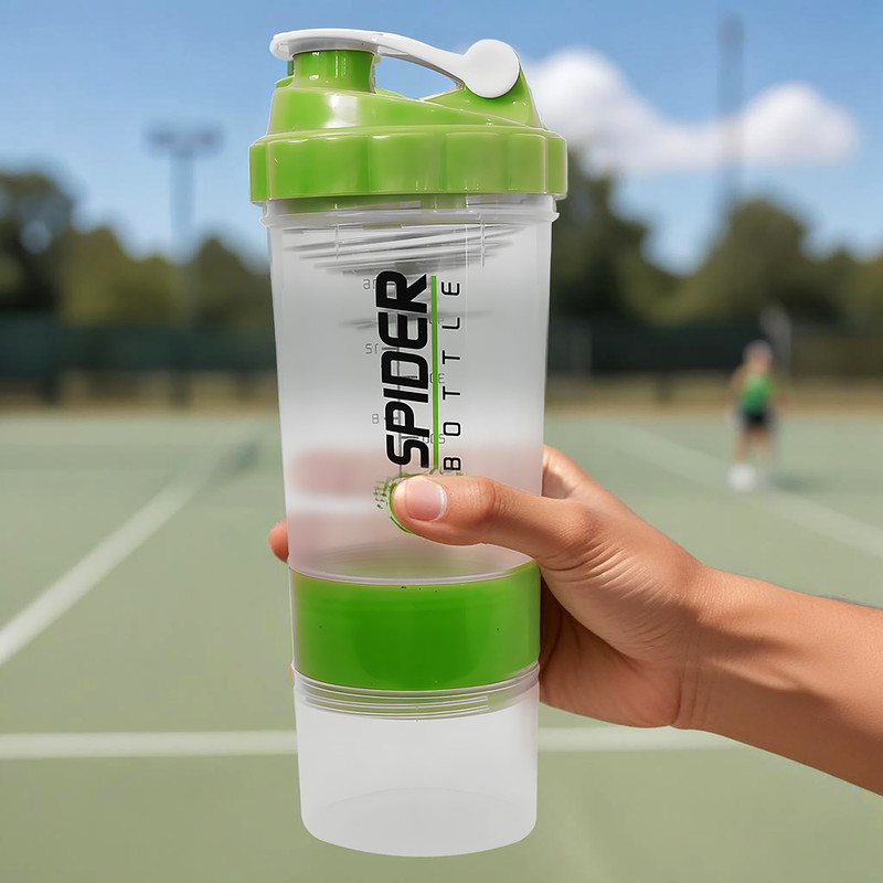 شیکر 3 تکه اسپایدر مدل «Glass ظرفیت 0.5 لیتر» قابل استفاده در باشگاه است و با طراحی دستی، به آسانی محلول شما آماده خواهد شد. این شیکر از فنر و محلی برای قراردادن قرص و پودر شما ساخته شده است. شیکر پرواسپرتز فاقد مواد مضری است که باعث بو گرفتن بدنه آن میشود. به علاوه محل قرص و پودر آن به صورت جداگانه قرار دارد و در هر زمانی قابل استفاده خواهد بود. فنر داخل این شیکر باعث میشود به راحتی مواد را هم زده و با هم مخلوط کنید. روی بدنه نیز محلی برای قرارگیری آسان دست طراحی شده است. «شیکر سه تیکه اسپایدر مدل «Glass ظرفیت 0.5 لیتر» با قابلیت در به صورت ضامنی و خروجی به صورت لولهای، استفاده از آن را بسیار آسان میکند. شما با داشتن این شیکر احساس بهتری در هنگام فعالیتهای ورزشی خواهید داشت.
