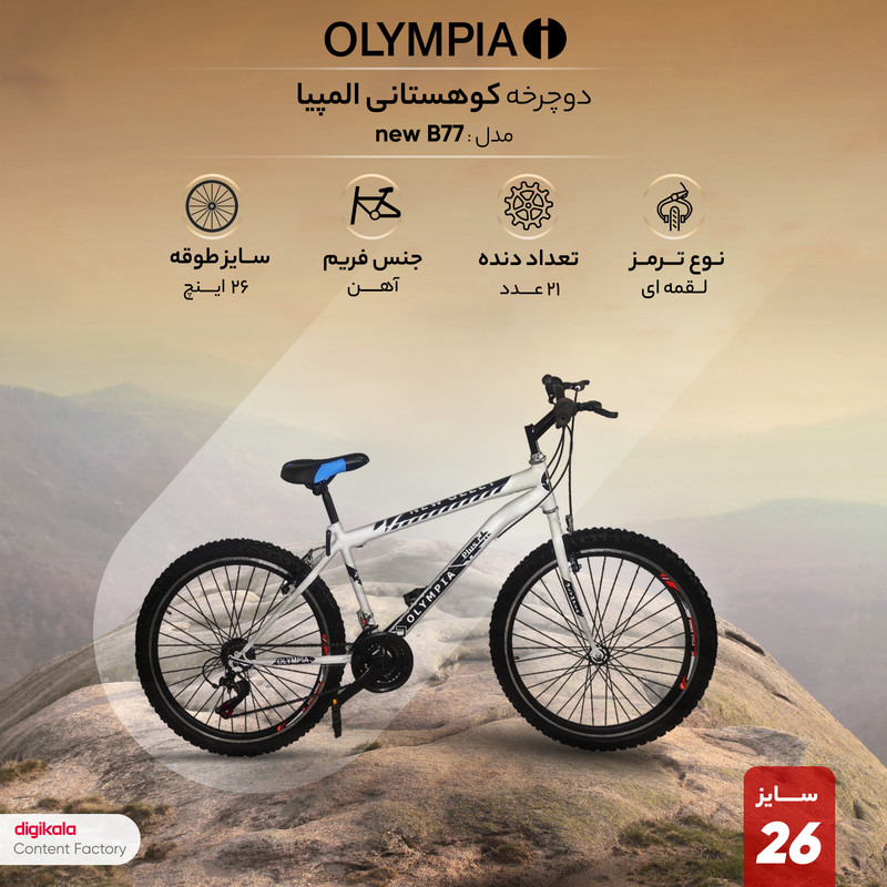 دوچرخه 26 المپیا کوهستانی ساخت ایران: تنه از مهمترین قسمت در دوچرخه محسوب میشود.ویژگی های زیادی در طراحی این دوچرخه در نظر گرفته شده که میتواند تا مقدار زیادی شما رو به معیار هایی که از دوچرخه سواری دارید برساند.اگر تنه محکم باشد ایمنی بیشتری در هنگام دوچرخه سواری خواهید داشت .در این دوچرخه از جنس فلز برای ساخت فریم استفاده کردیم .این جنس از مقاومت بالا در برابر رطوبت و به دلیل هزینه های پایین و همچنین به دلیل وزن ایده آلی که دارد و به دلیل مقاومتی که در برابر فشار /ضربه و سایش دارد باعث شده که طرافدار های خیلی زیادی داشته باشد.این نوع به دلیل ساختار دلنشینی که دارد بیشتر مورد توجه قرار گرفته و بخاطر قیمت معقولی که دارد بهترین و مناسب ترین انتخاب خواهد بود.به راحتی مونتاژ کنید فقط با یک دسته آلن و آچار 15 تخت خیلی راحت میتوانید دوچرخه رو مونتاژکنید این دوچرخه قبل از بسته بندی آچارکشی میشود و تنظیمات دوچرخه به طور کلی انجام میشود و فقط به این دلیل که دوچرخه ی آماده قابل بسته بندی نمیباشد مجبوریم فقط چرخ جلو و فرمان رو جدا کنیم که دوچرخه بصورت استاندارد بسته بندی شود که در هنگام بارگیری و ارسال دوچرخه آسیبی به دوچرخه نرسد
