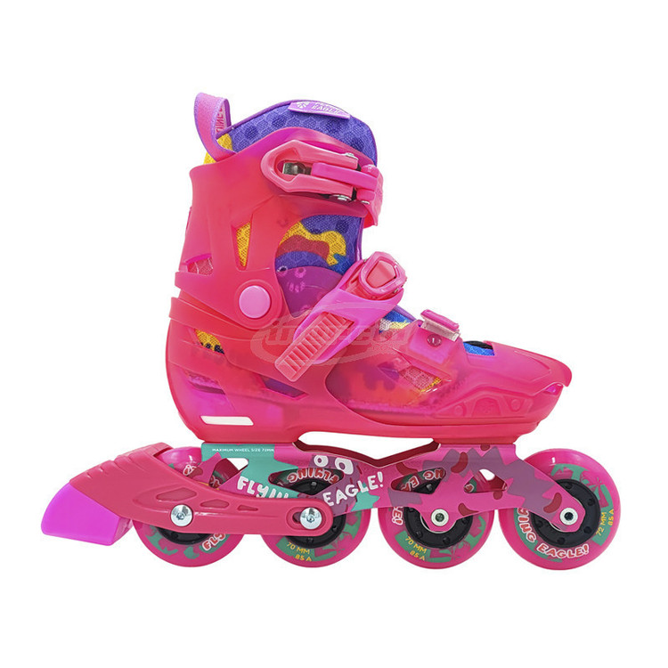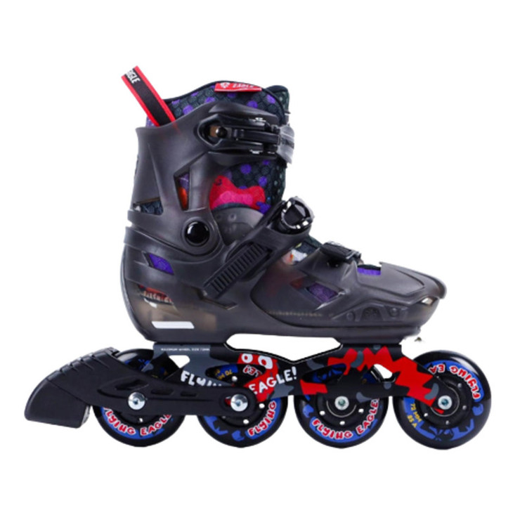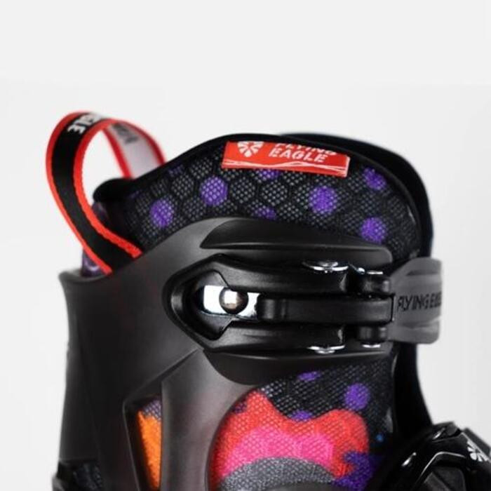 اسکیت فللاینگ ایکل تکنولوژی کشور اسپانیا می باشد. بوت استفاده شده برای اسکیت کفشی فلایینگ ایگل S8 از جنس پلی پریلین بوده که دارای استحکام مناسبی میباشد. بوت این اسکیت جزو بوتهای هارد با کیفیت بازار میباشد. از این رو به خوبی میتواند از پای فرزند شما محافظت کند. این اسکیت در سایز 37 تا 41 تولید شده است و قابل تنظیم است. اسکیت بچگانه فلاییگ ایگل S8، در دو رنگ مشکی و صورتی تولید شده است و برای سلیقههای مختلف قابل استفاده است. در قسمت کناری بوت ، یک بر آمدگی تعبیه شده است که حکم ضربه گیر را داشته و از بوت در هنگام برخورد با زمین محافظت میکند. برای تنظیم اندازه بوت ، در این اسکیت از سه مکانیزم استفاده شده است : بند برای تنظیم قسمت پنجه پا ، مکانیز بست جغجغهای برای تنظیم مچ پا و بست قلاف دار برای تنظیم قسمت ساق پا. در قسمت بند بوت ، یک جفت محافظ بند تعبیه شده است که از پاره شدن بند در هنگام زمین خوردن جلوگیری میکند. بست ضامن دار جغجغهای استفاده شده برای قسمت مچ پا از نوع سه تکه بوده و دارای کیفیت بسیار بالایی میباشد. ضامن استفاده شده از جنس فلز بوده و بسیار مقاوم میباشد. در قسمت زیرین بست ، یک قطعه پشیبان قرار داده شده است که باعث پخش شدن فشار وارده میشود. وجود مکانیزم جغجغه ، باعث افزایش کارایی و همچنین تسریع در روند سفت کردن بست میشود. ست ایمنی اسکیت اورجینال شرکت می باشد و کلاه ایمنی ریگلاژ دار و ست ایمنی جورابی به همراه چسب می باشد. کیف اسکیت برزنتی بسیار مقاوم هم جهت حمل اسان برای شما ارسال می گردد.