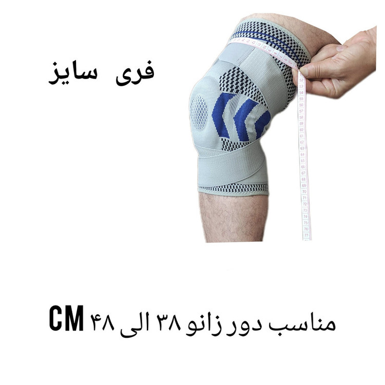 سایر توضیحات: زانوبند فری سایز و مناسب افراد با دور زانو 38 الی 48 می باشد، محل اندازه گیری زانو انتهای ران کمی بالاتر از زانو می باشد.