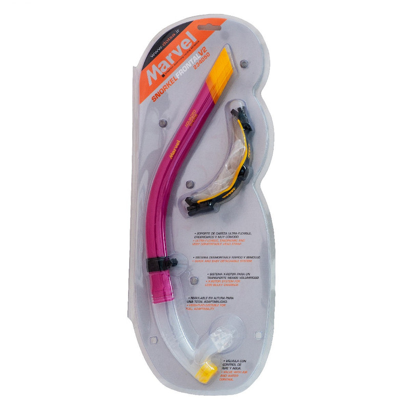 - قطعه دهنی ساخته شده از سیلیکون برای جلوگیری از حساسیت - بند قابل تنظیم - موقعیت قرارگیری در وسط سر برای راحتی شنا کردن با سر رو به پایین دو سوپاپ