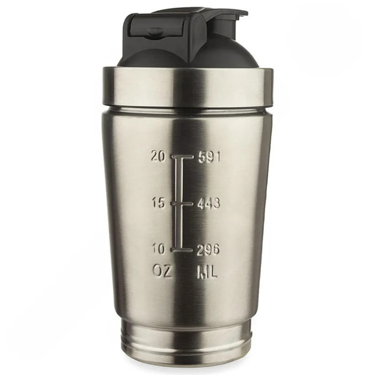 وزن280 گرم دارای درجه بندی گنجایش 591 سی سی ابعاد 9× 18 سانتی متر از جنس استیل بسیار بادوام مجهز به گوی فنری میکسر کاملاً آب بندی شده و ضد نشتی محل خروج مایعات به صورت ضامنی مقاوم در برابر ضربه، ضد بو و ضد زنگ شامل محفظه ی اصلی و یک محفظه ی درب دار کوچکتر