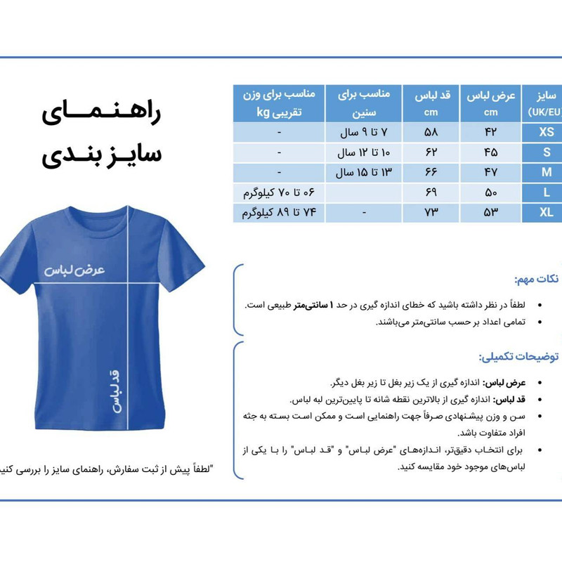 حتما مطابق با جدول اندازه گرفته سپس سفارش خود را ثبت کنید.