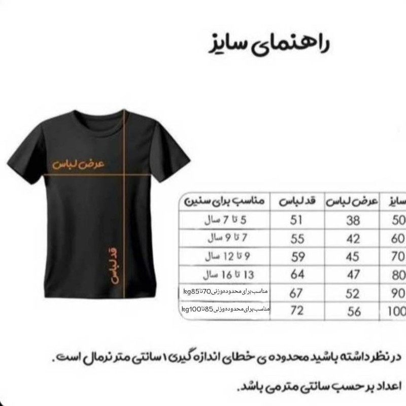 لطفا قبل از ثبت سفارش حتما مطابق با جدول اندازه بگیرید سپس سفارش خود را ثبت بفرمایید.