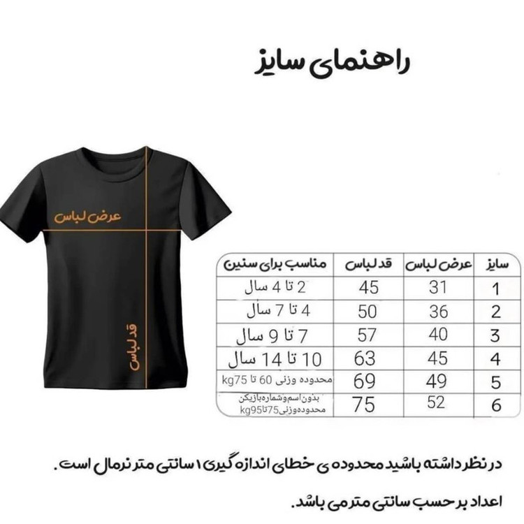 حتما قبل از سفارش مطابق با جدول اندازه بگیرید سپس سفارش خود را ثبت بفرمایید.