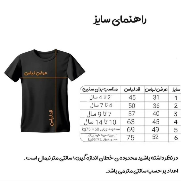 حتما مطابق با جدول سایزبندی اندازه بگیرید سپس سفارش خود را ثبت کنید.