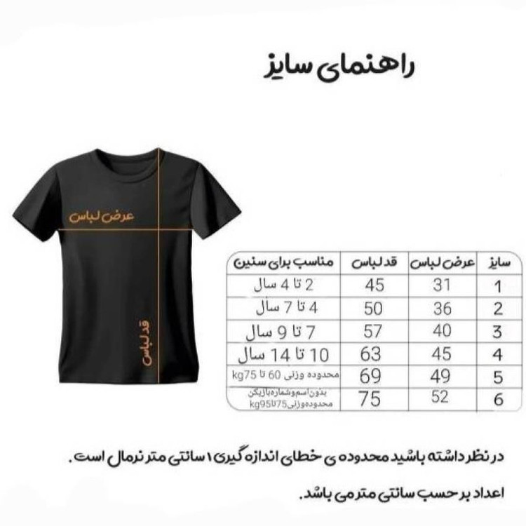 لطفا قبل از ثبت سفارش مطابق با جدول اندازه بگیرید سپس سفارش خود را ثبت کنید.