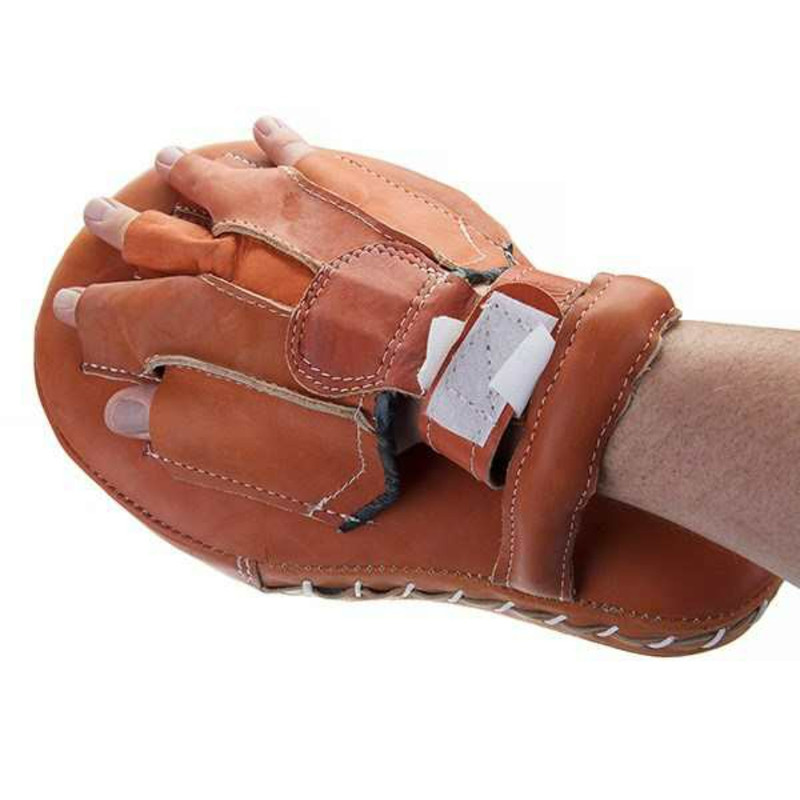 میت پنجه ای چرمی ساعددار دارای محفظه قرارگیرنده دست به شکل دستکش و دو عدد مچبند نگهدارنده دست میباشد