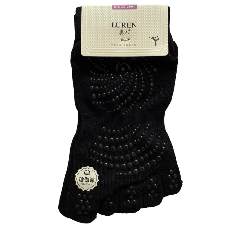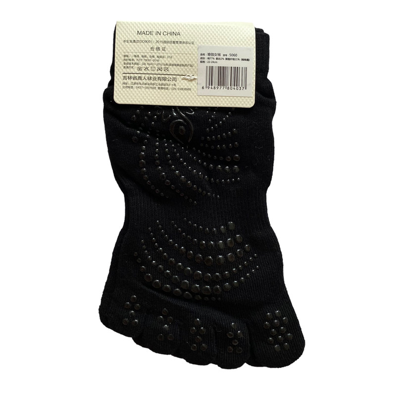 جوراب ساق کوتاه ورزشی زنانه مناسب برای پیلاتس و یوگا مناسب برای سایز پا 36 تا 41 تشکیل شده از 80 درصد نخ مدل استپ دار مدل انگشتی رنگ مشکی